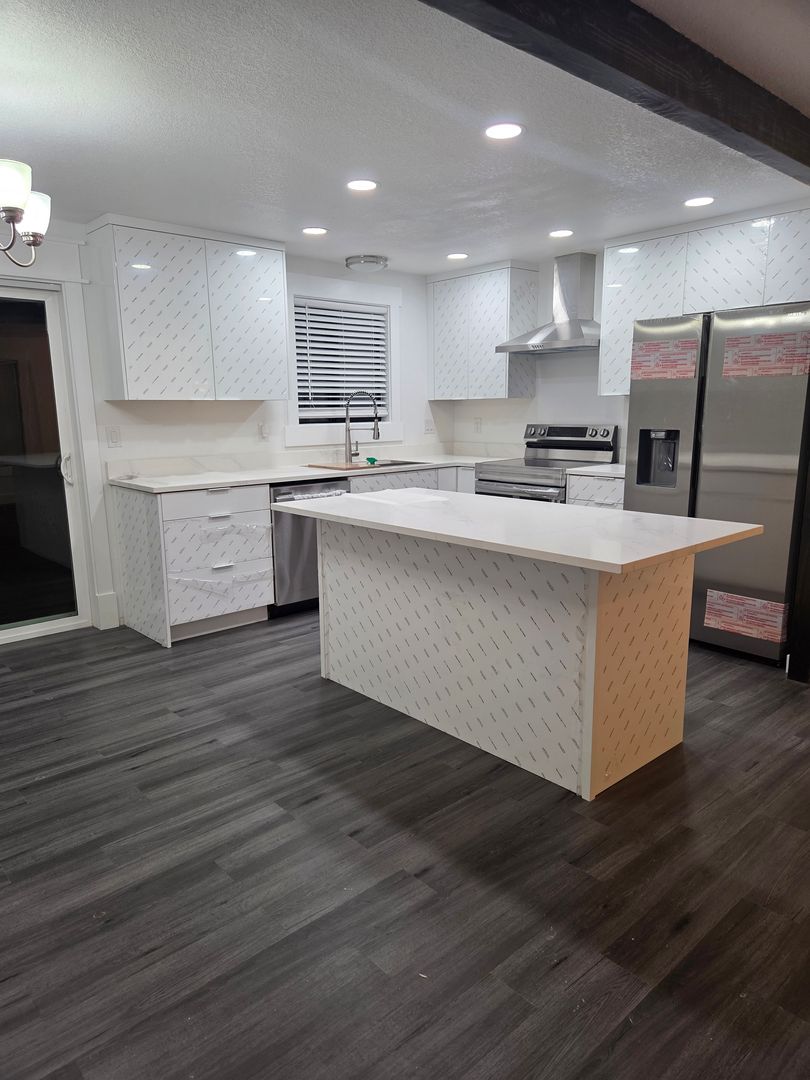 Exceptional 5 bedroom 2 bath split level home! Located in an established, well cared for neighborhood on a dead end street. Large fifth bedroom downstairs is spacious enough to serve as a family room. Totally renovated. New kitchen cabinets, quartz countertops, large kitchen island, stainless appliances. Open concept kitchen to living room/dining room. Beautiful linear electric fireplace. Large fenced back yard with Asian Pear and Persimmon trees! Backs up to a wooded preserve. Wonderful upper deck for entertaining and lower deck. W/D provided, 2 Car garage
